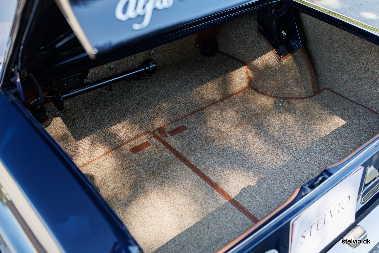 This beautiful Giulia Super – in the most sought-after version – we found in Italy some years ago. In 2011 it underwent a complete restoration including a total disassembly, sanding to bare metal and high-quality painting – even to the underside – in the original color Blu Olandese (Dutch blue).