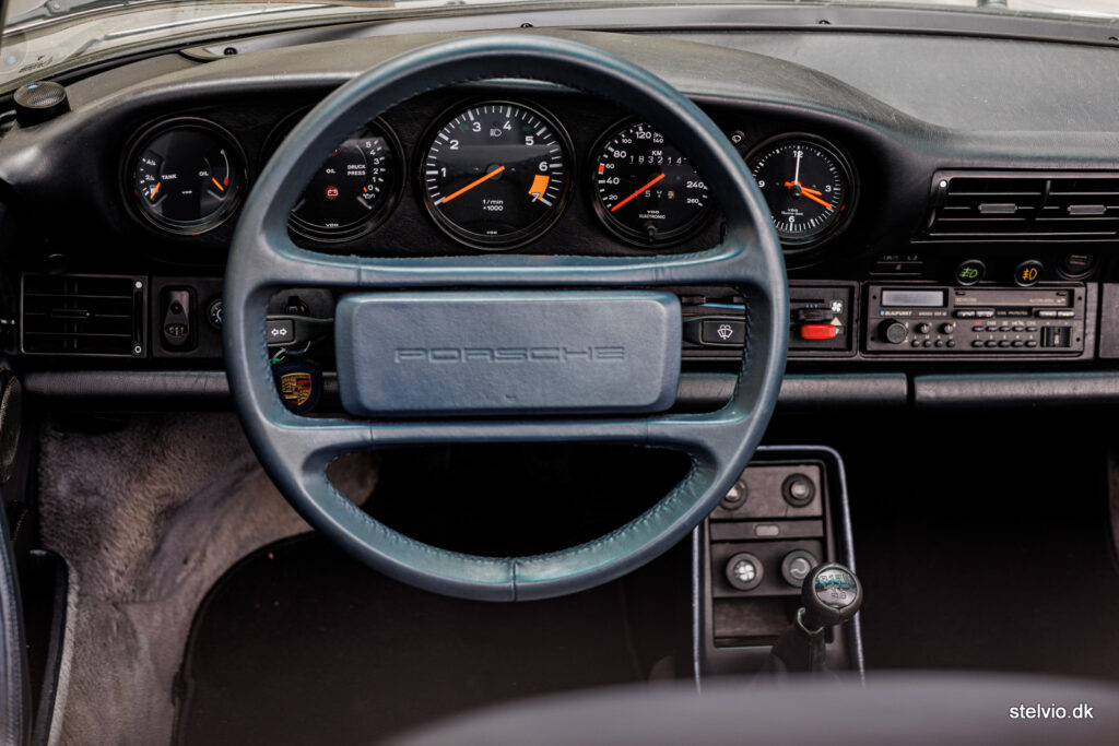 Dette eksemplar er naturligvis matching numbers, leveret 31. juli 1987 fra MAHAG i München. Efter nogle år i Tyskland kom bilen til Sydafrika og endelig til Danmark i 2022, hjembragt af en entusiast der havde købt bilen under sin udstationering. Der foreligger 9 stempler i servicehæftet og i forbindelse med købet blev der foretaget en omfattende gennemgang af Porsche Centre Cape Town (der blev fløjet ind til opgaven!). Der er således tale om en rigtig fin, original og veldokumenteret bil, der i dag stadig kun har kørt 183.000 km. Bilen er aldrig restaureret, men løbende vedligeholdt og i rigtig fin stand, med den ægte patina, som knap 40 års omsorgsfuldt brug har medført. En oplagt investeringsbil grundet sin sjældenhed – der samtidig er sjov at køre.